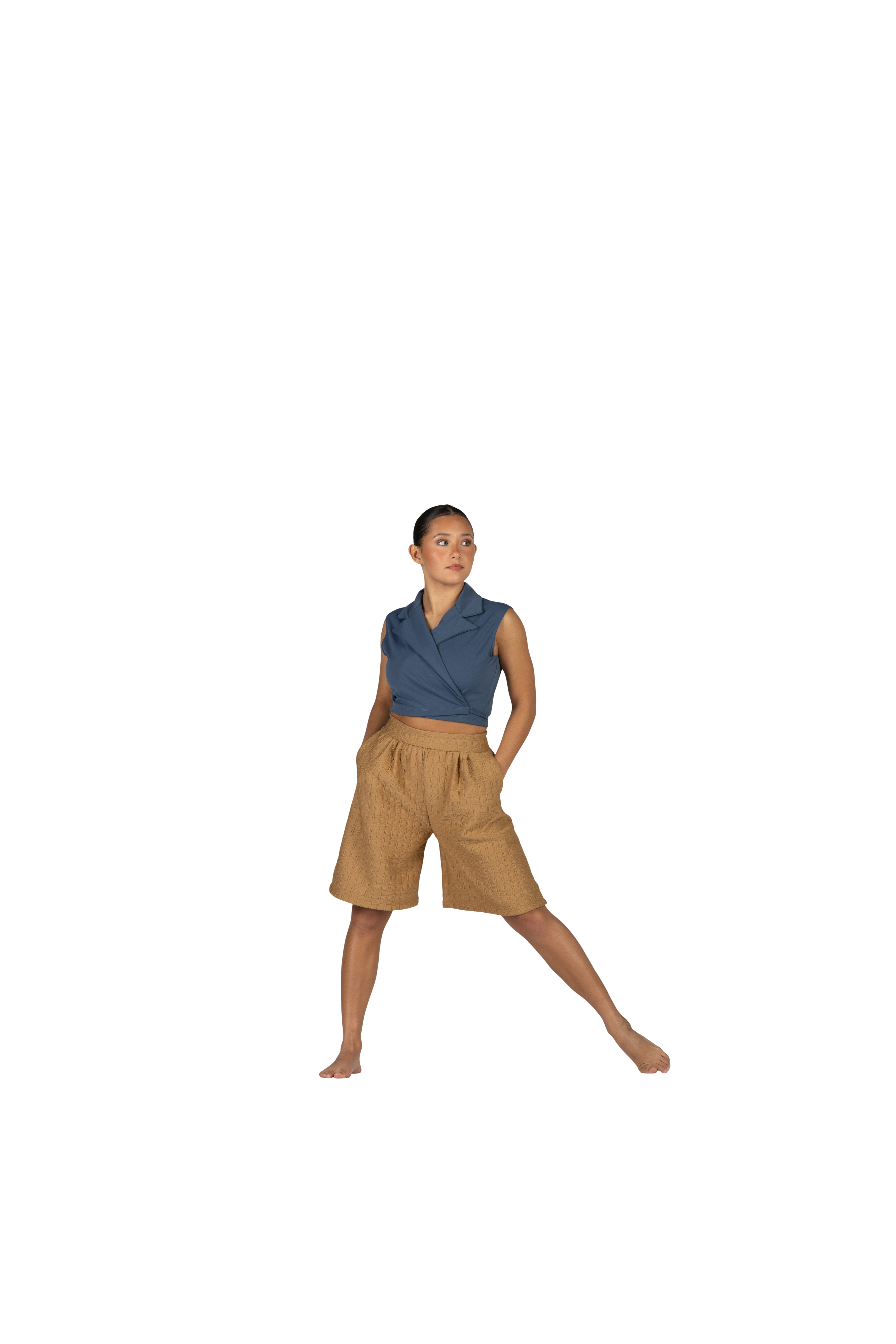 INTERLOCK WRAP TOP, TEXTURE SHORTS