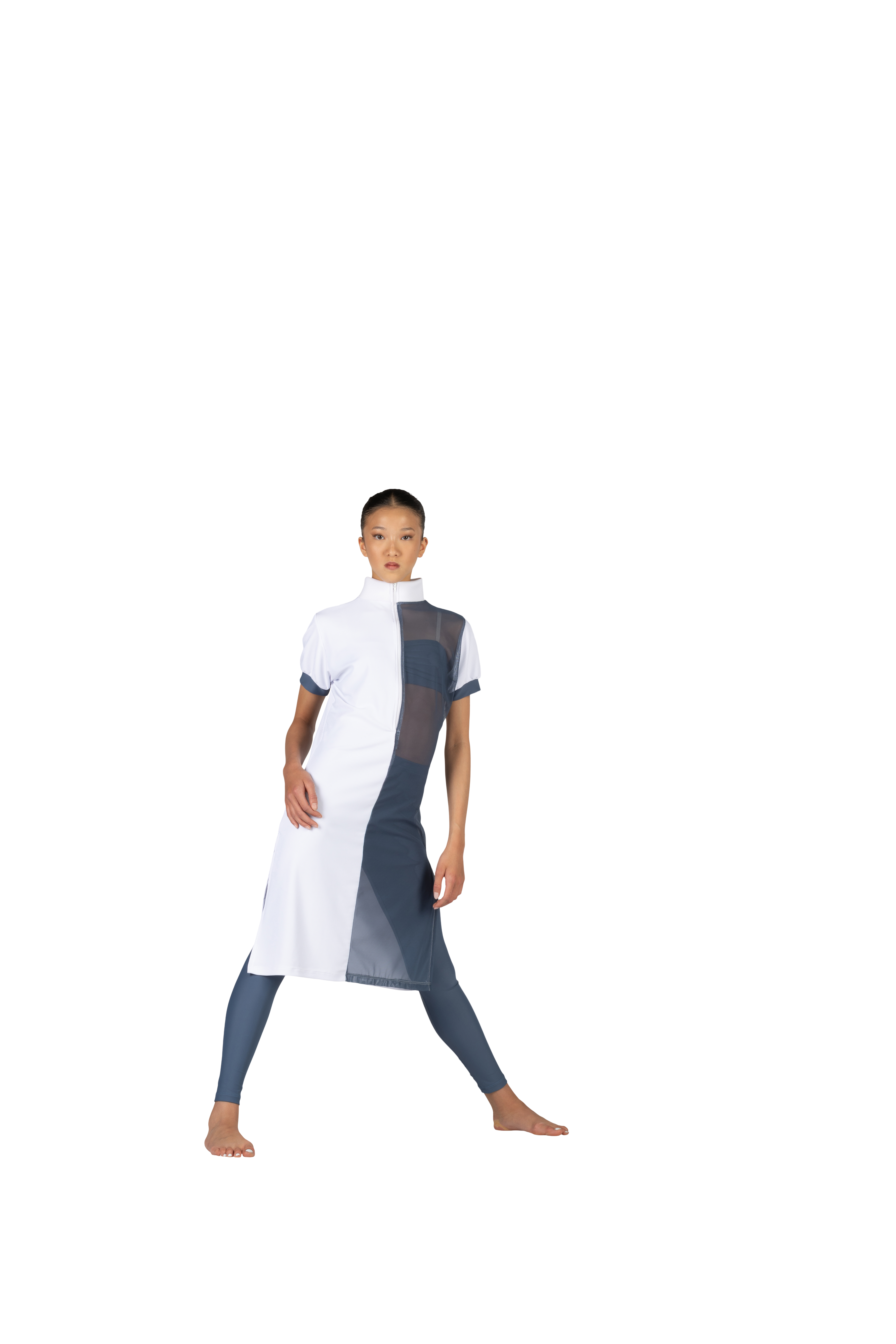 MESH, RIB TEXTURE & TRICOT DRESS WITH BRA & LEGGINGS