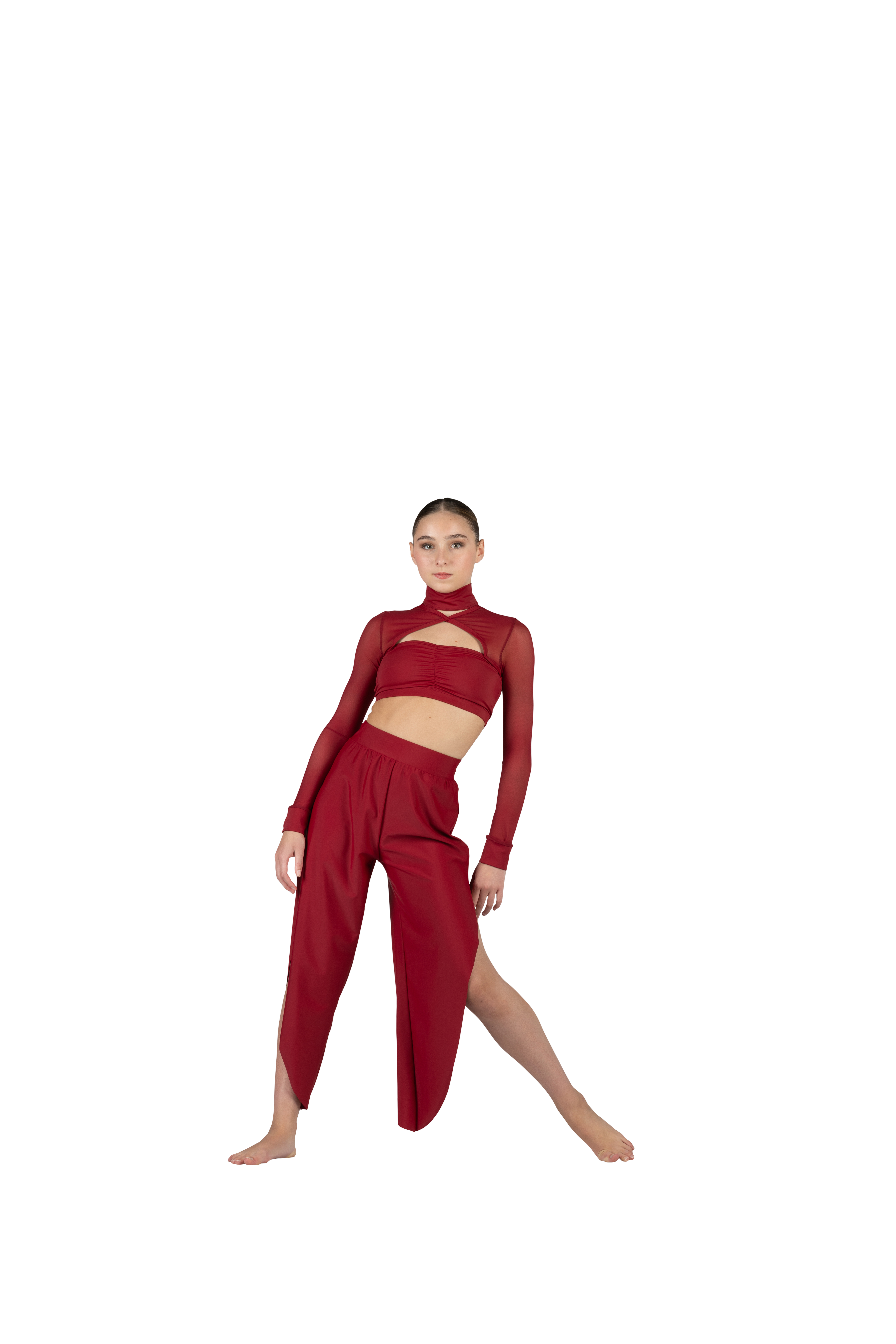 TRICOT & MESH TOP, PANTS WITH SLITS ON SIDES